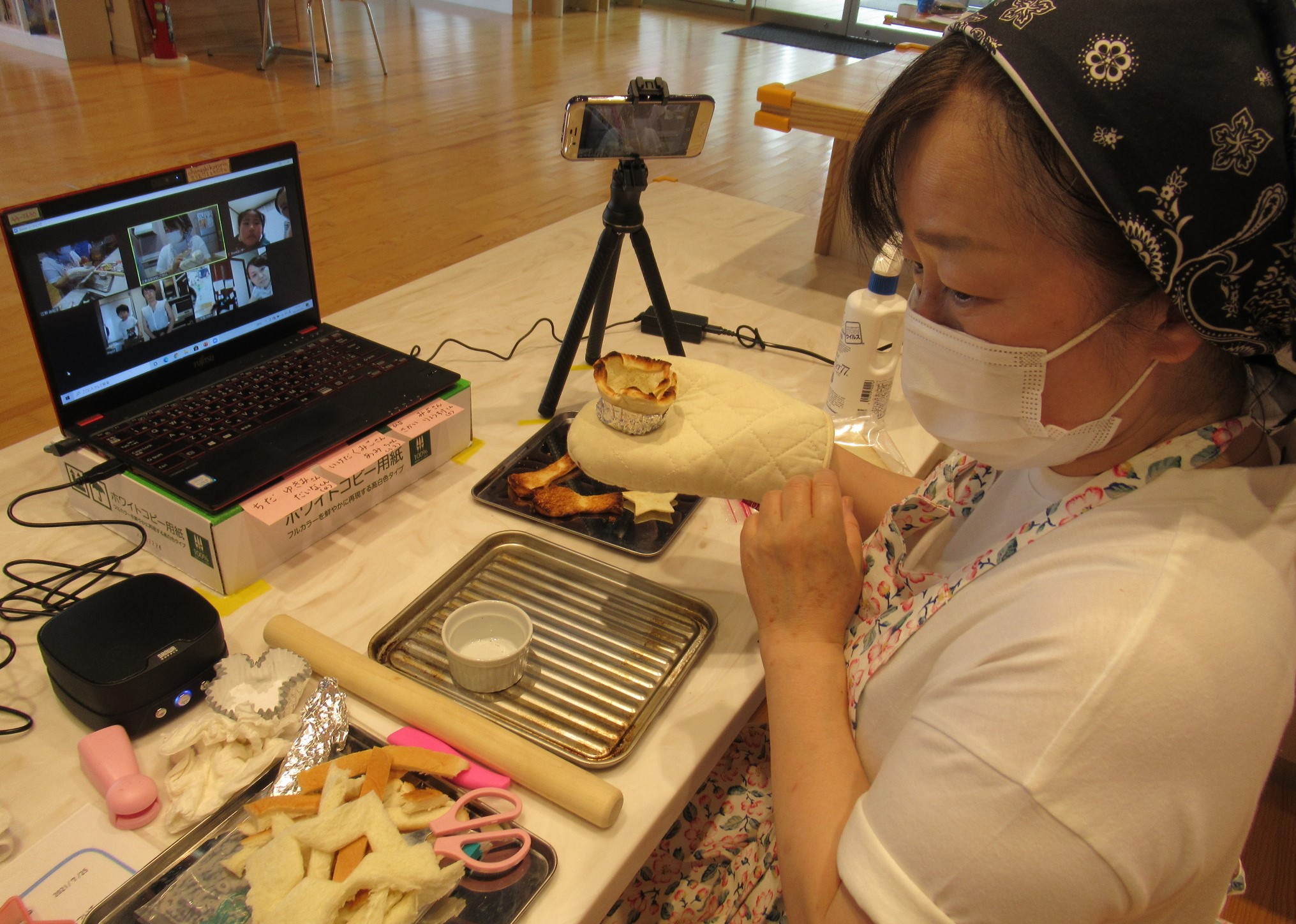 試食中、先生がパンでスプーンとカップ、飾りの星まで作り、手作り感満載の教室となりました。