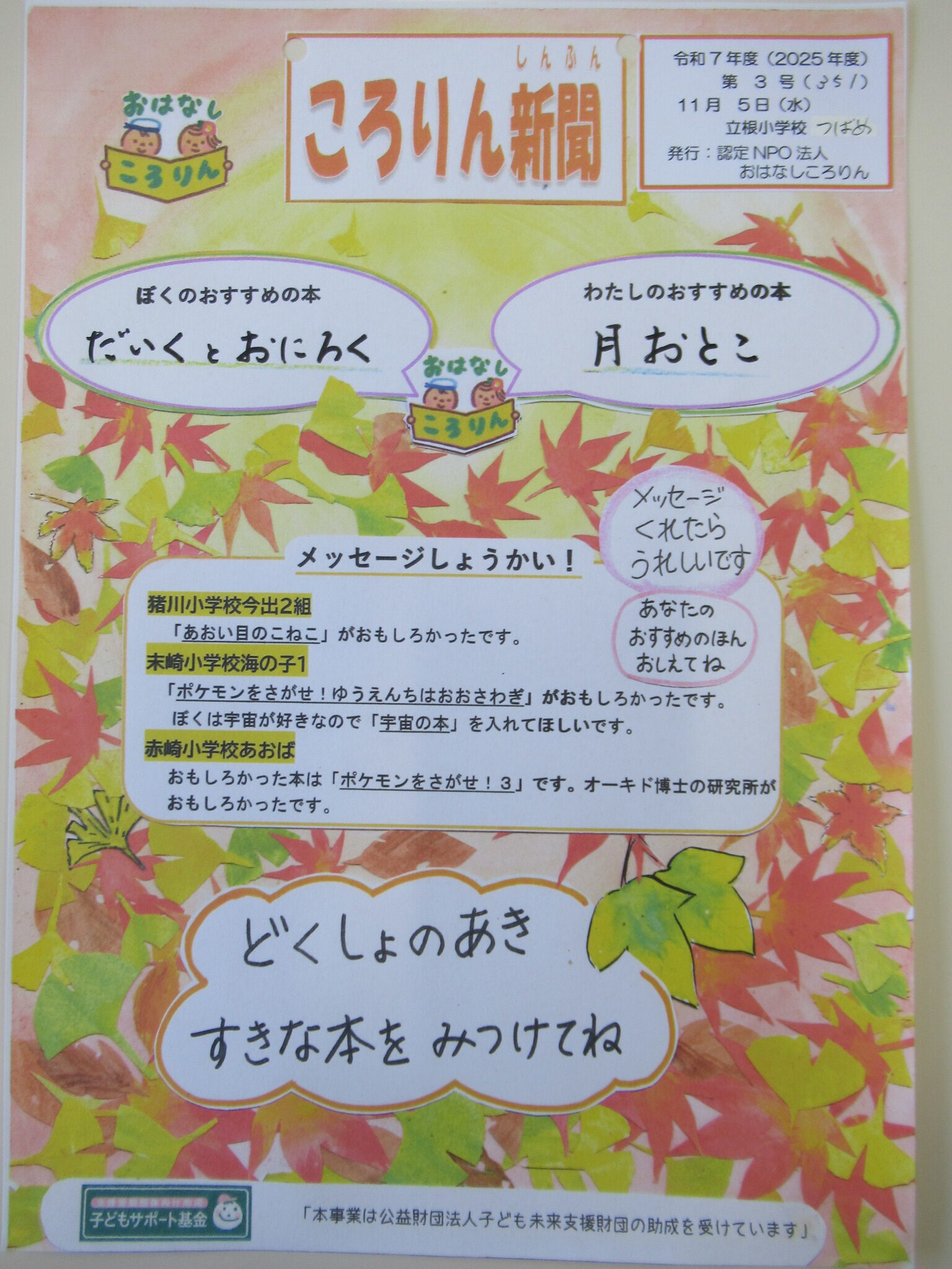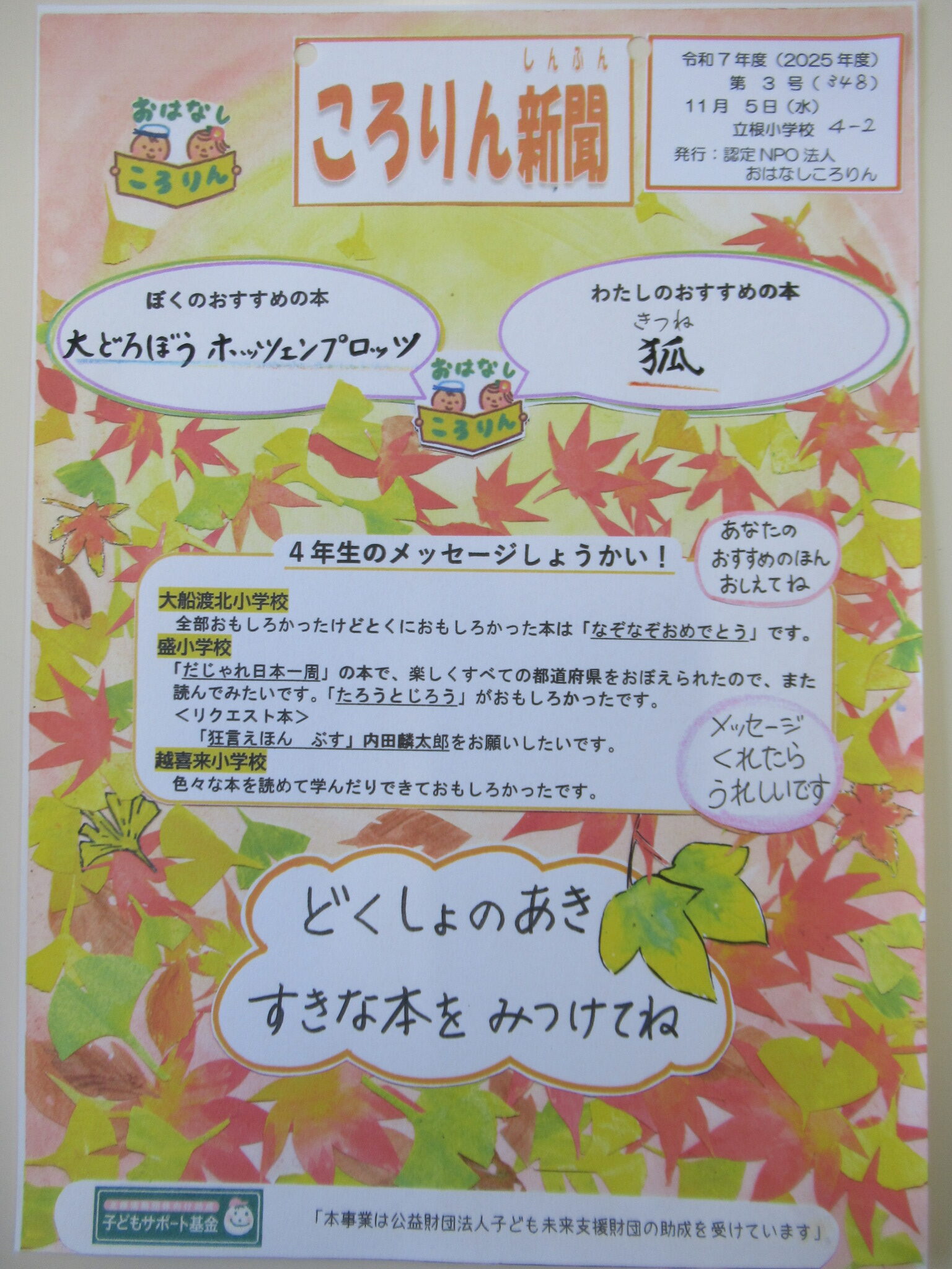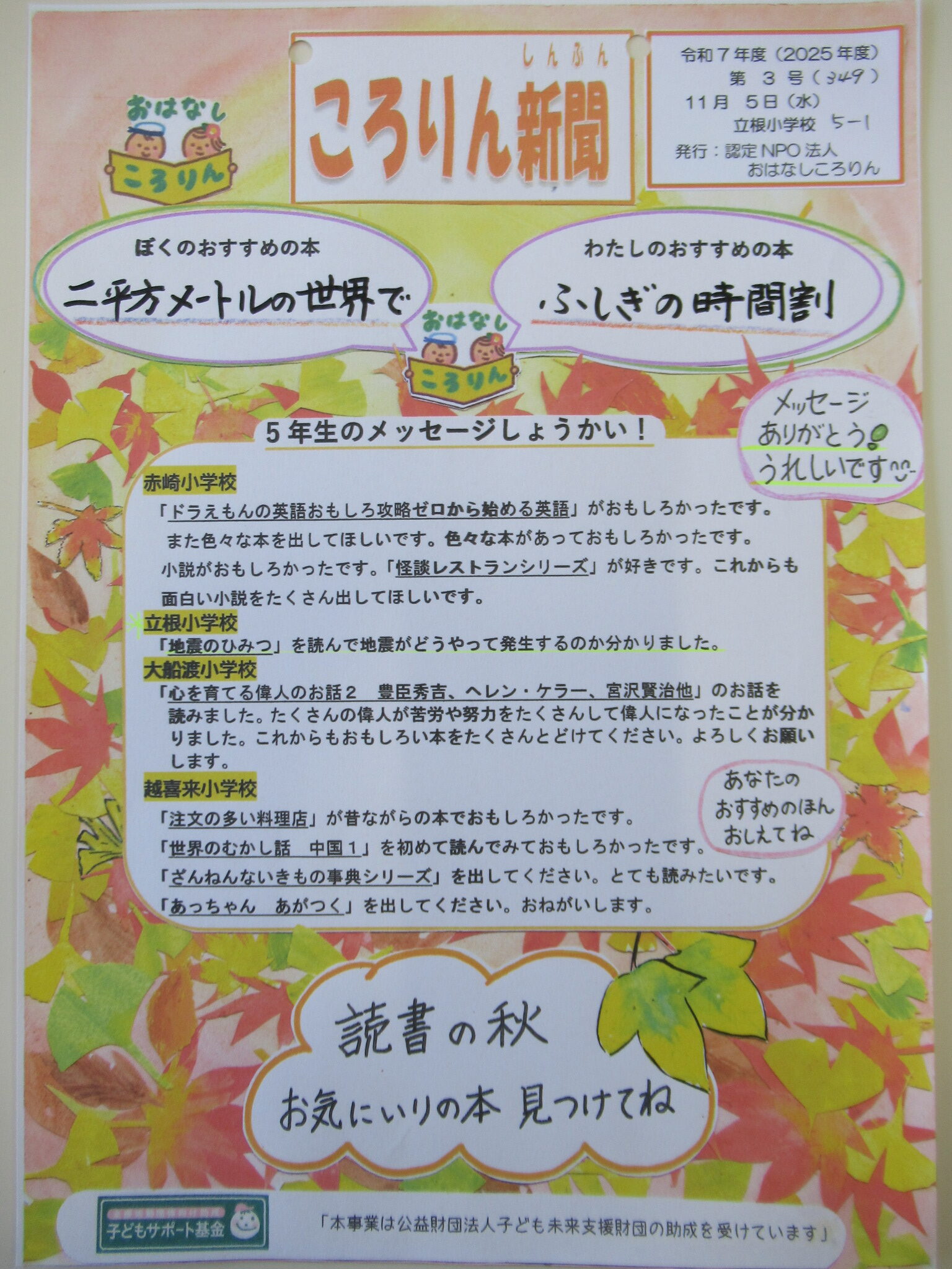 紅葉のころりん新聞を発行しています。