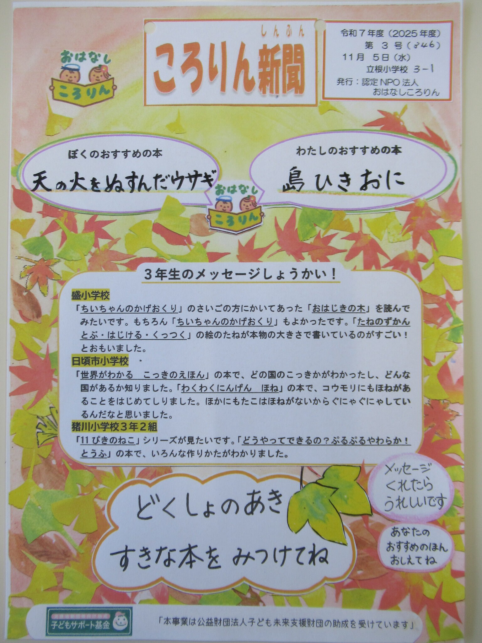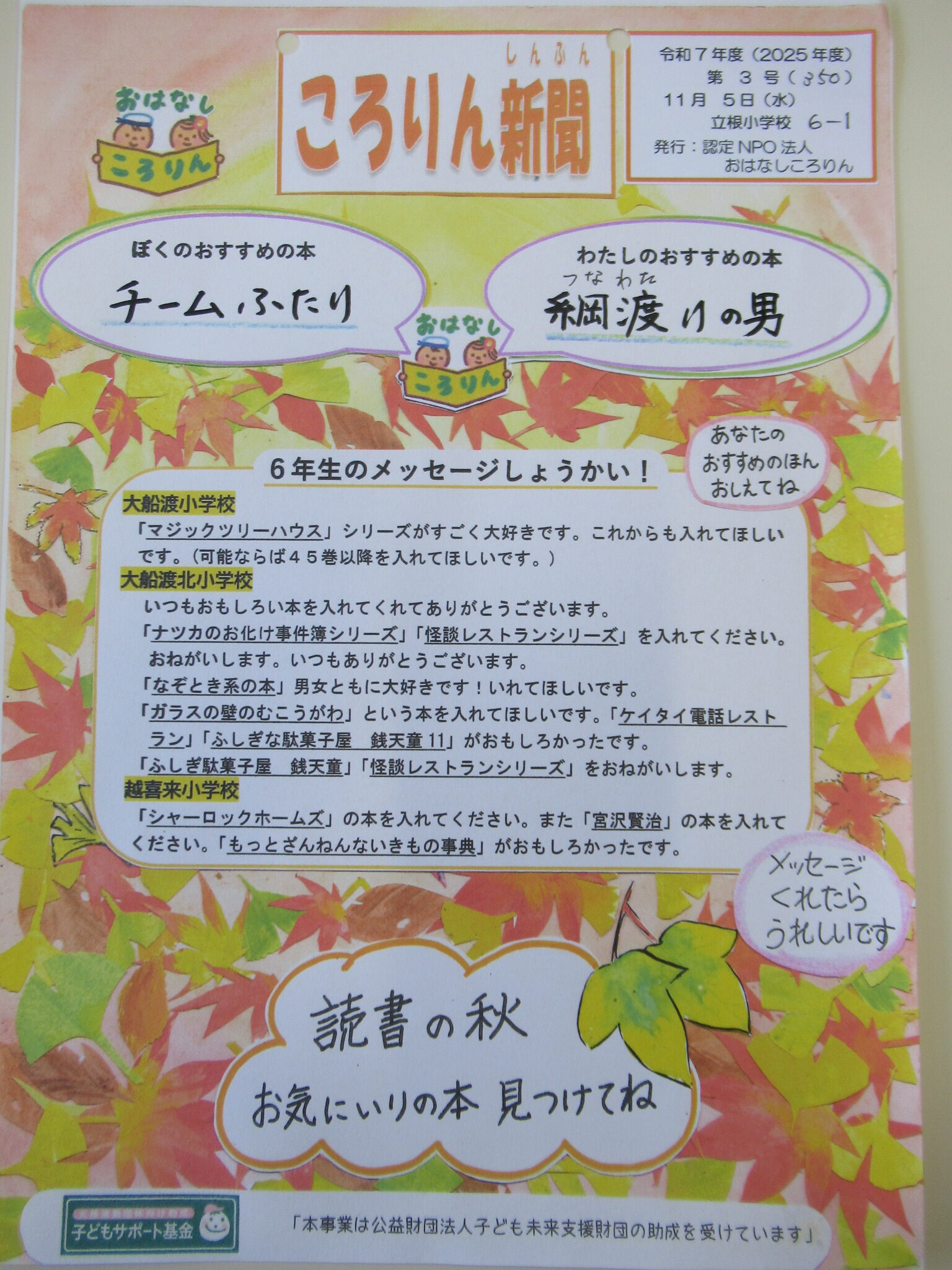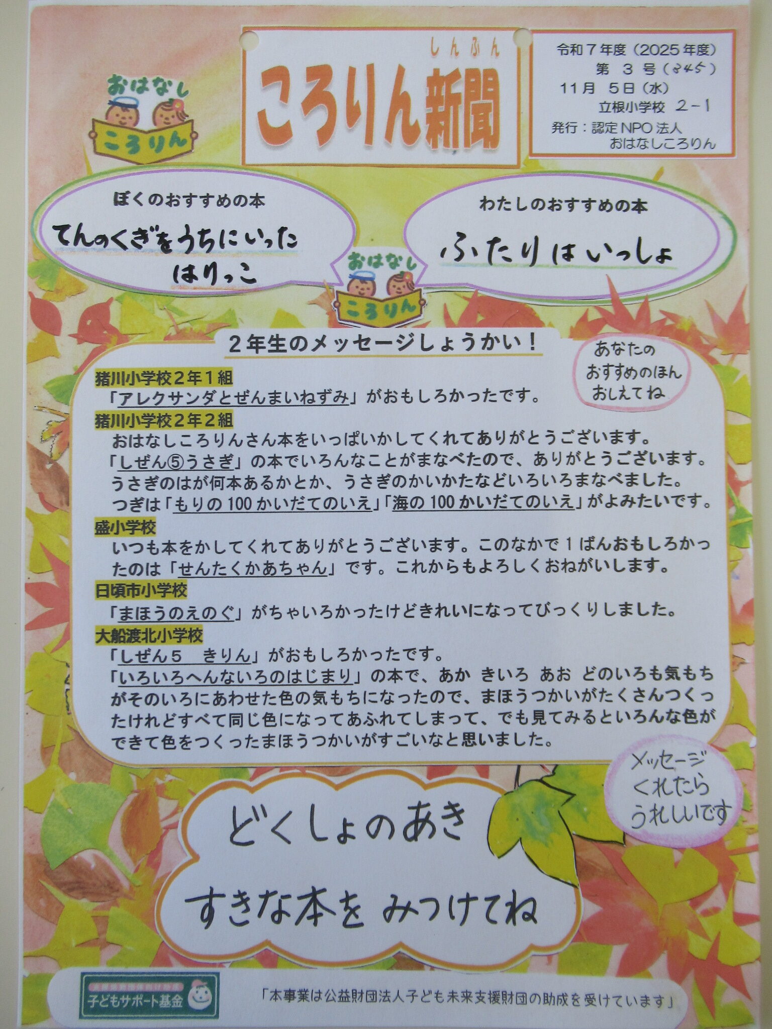紅葉のころりん新聞を発行しています。
