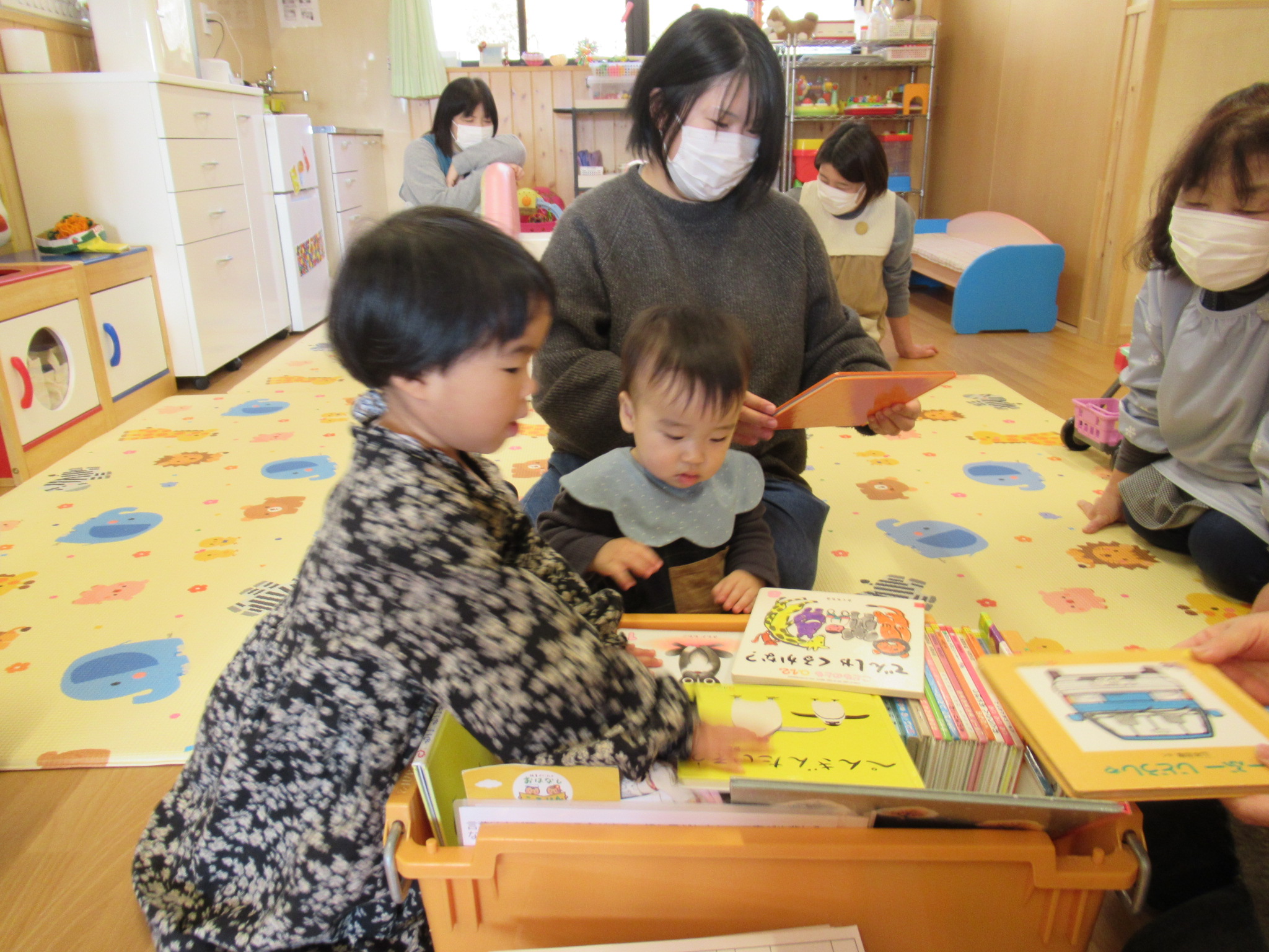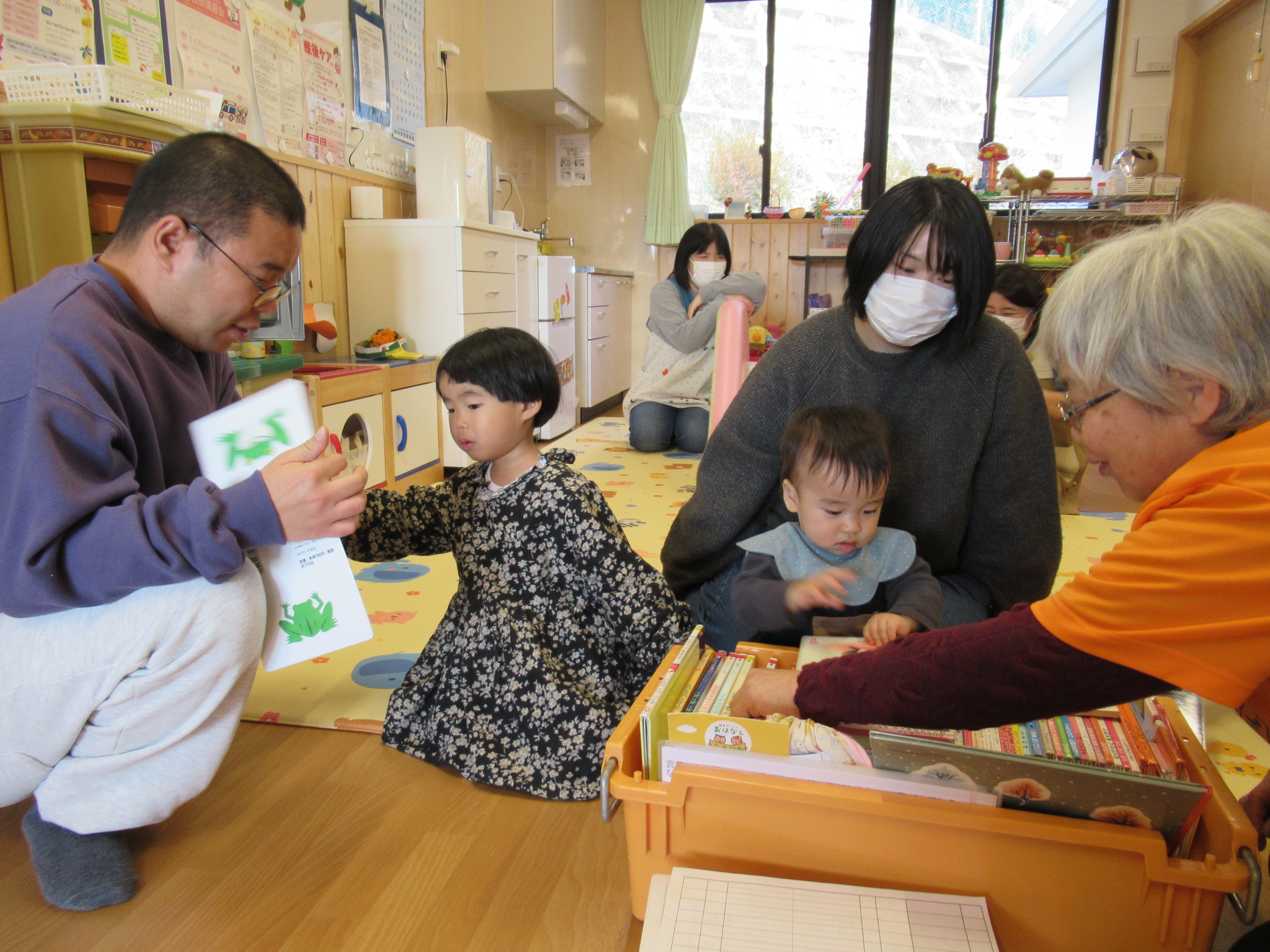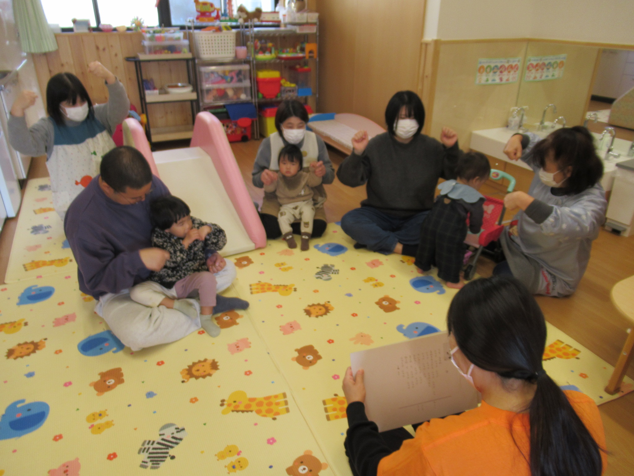 1月9日(金)おひさまひろばでお話会があり、2組の親子が参加しました。