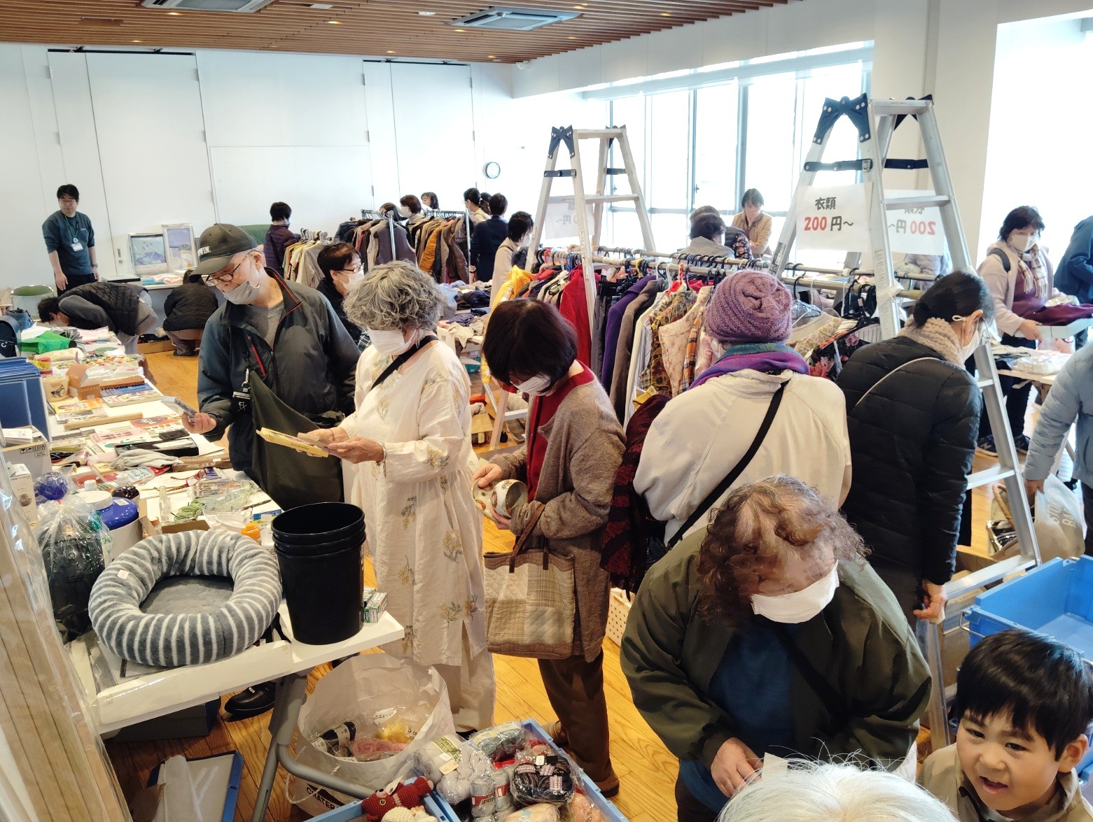 バザー開始とともに大勢のお客様が掘り出し物を見つけようと来場して大盛況!雑貨・日用品・衣類・タオル類・中古本(展示室)と種類も豊富にご用意しています。