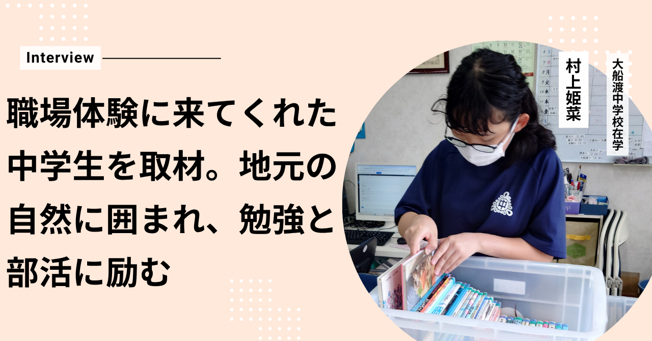 職場見学で「おはなしころりん」に来てくれた、大船渡中学校の村上さんを取材しました.