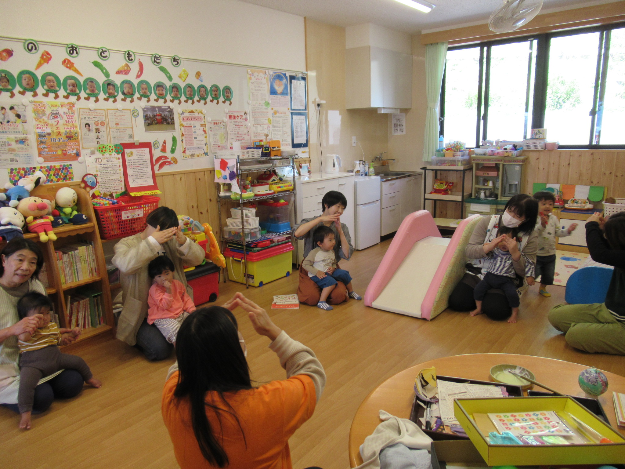 10月10日(金)おひさまひろばでお話会があり、3組の親子が参加しました。