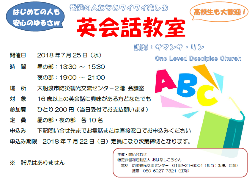 対 象 16歳以上の英会話に興味がある方どなたでも