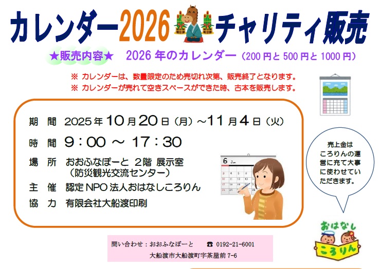 売上金はころりんの運営に充て大事に使わせていただきます。