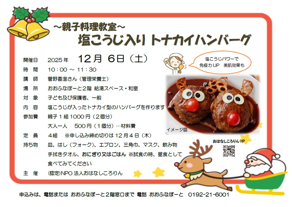 ~親子料理教室~塩こうじ入りトナカイハンバーグ