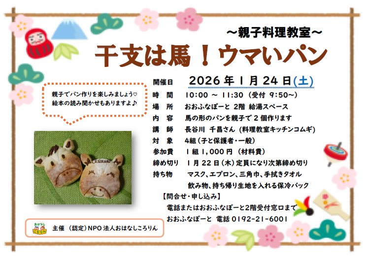 新年最初の親子料理教室は干支の馬のパンを作りますよ。