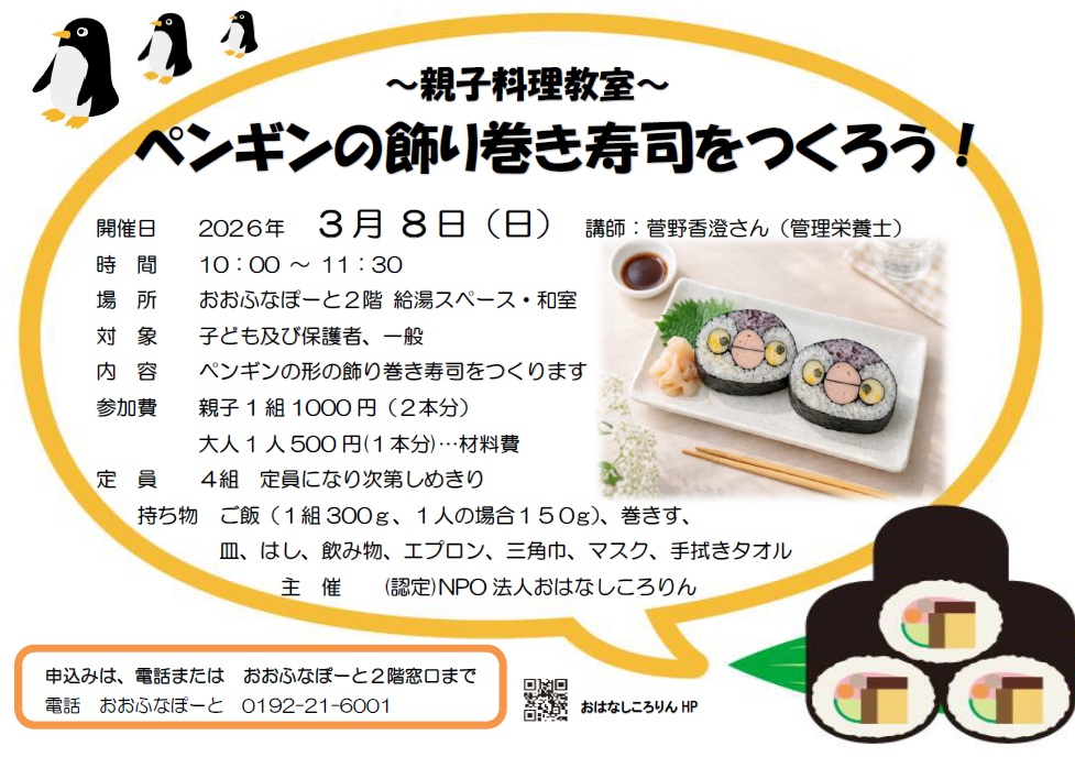 ~親子料理教室~ペンギンの飾り巻き寿司をつくろう!